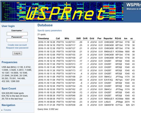 Wisper Database : With our magnetic loop antenna , in the shack , PI5FTS heard by: see list |